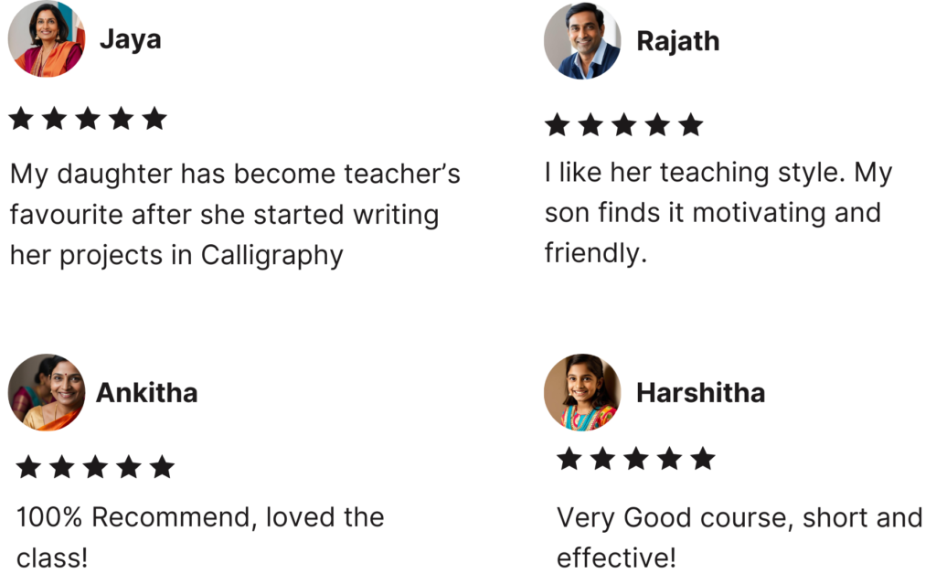 Shruthi Hegde has taught Calligraphy in schools and learning centers across Bangalore and has spent 10 years working in Brand Communication in France and Germany. She now devotes her time to teaching children calligraphy, cognitive development, handwriting communication, and emotional intelligence.