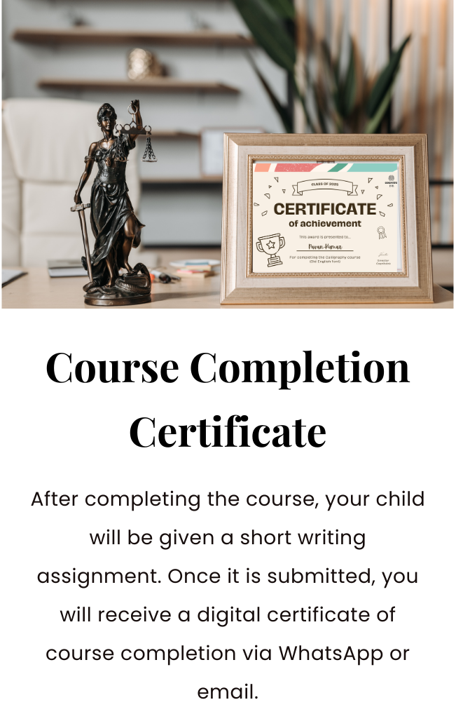 Join our interactive, results-driven course designed to help students confidently master the basics of Old English calligraphy—all in one weekend!We run classes every two weeks, so if a particular slot doesn't work for your child, no worries—they can easily join the next batch.